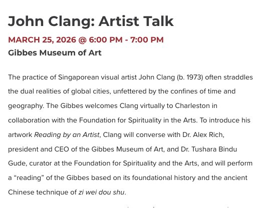 John Clang: Artist Talk @ the Gibbes Museum of Art