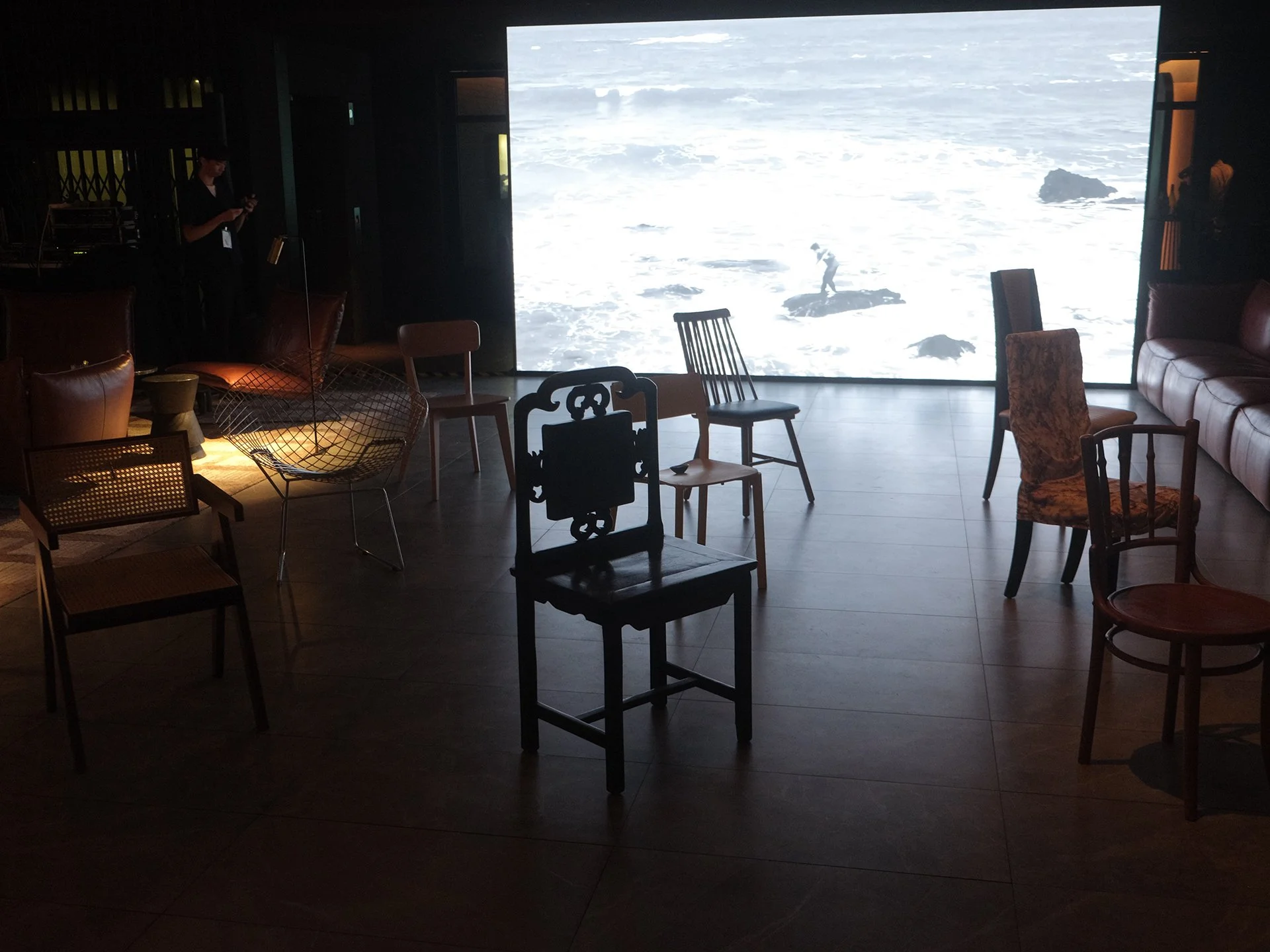 Instead of seeing the ocean as a purely symbolic space, it engages Singapore as a maritime environment that has been structured by these daily rehearsals of power through the form of a hotel: a social and spatial structure very much shaped by the specific oceanic, historical, and logistical conditions of its locale. Here, it enters a site historically defined by tides of labor and intimacy—a district once shaped by boat workers, secret societies, and red-light economies—and transforms the hotel’s architecture of regulated hospitality into a space for reflection.